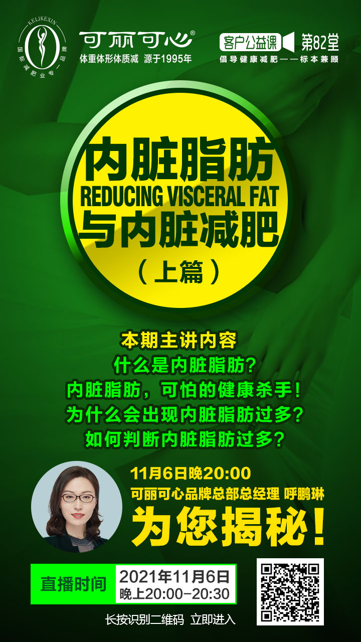可丽可心线上公益课——内脏脂肪与内脏减肥(上篇)◎第八十二堂 客户公益课◎ 本期主讲内容:什么是内脏脂肪?内脏脂肪,可怕的健康杀手!为什么会出现内脏脂肪过多?如何判...